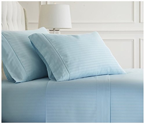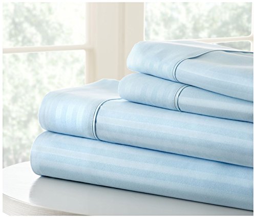 Luxury Hotel Quality Becky Cameron Embossed Dobby Stripe Design 4 Piece Bed Sheet Set,Twin, Aqua