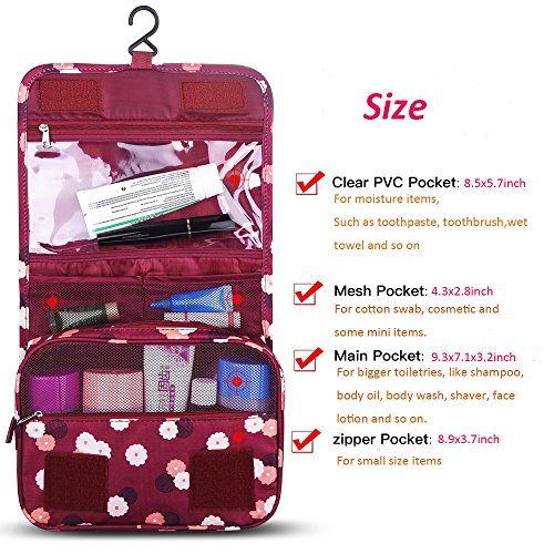 * Multi pockets (PVC pocket for wet items like towels) well organize maximum travel accessories. Keeps all your belongs clean and tidy.