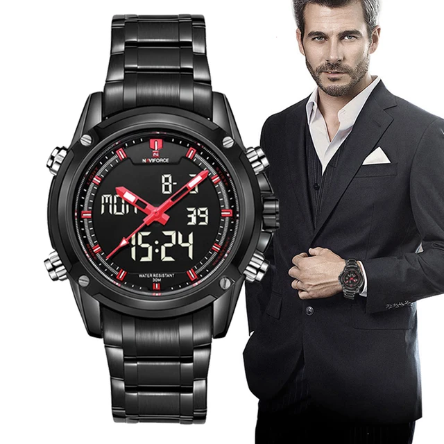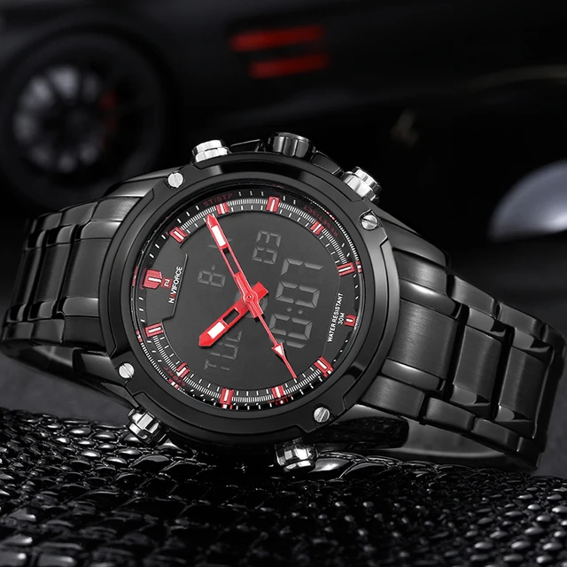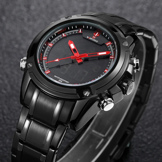 | [해외] 최고 럭셔리 브랜드 NAVIFORCE 남성 방수 LED 스포츠 군사 시계 남성 석영 아날로그 디지털 손목 시계 relogio masculino |