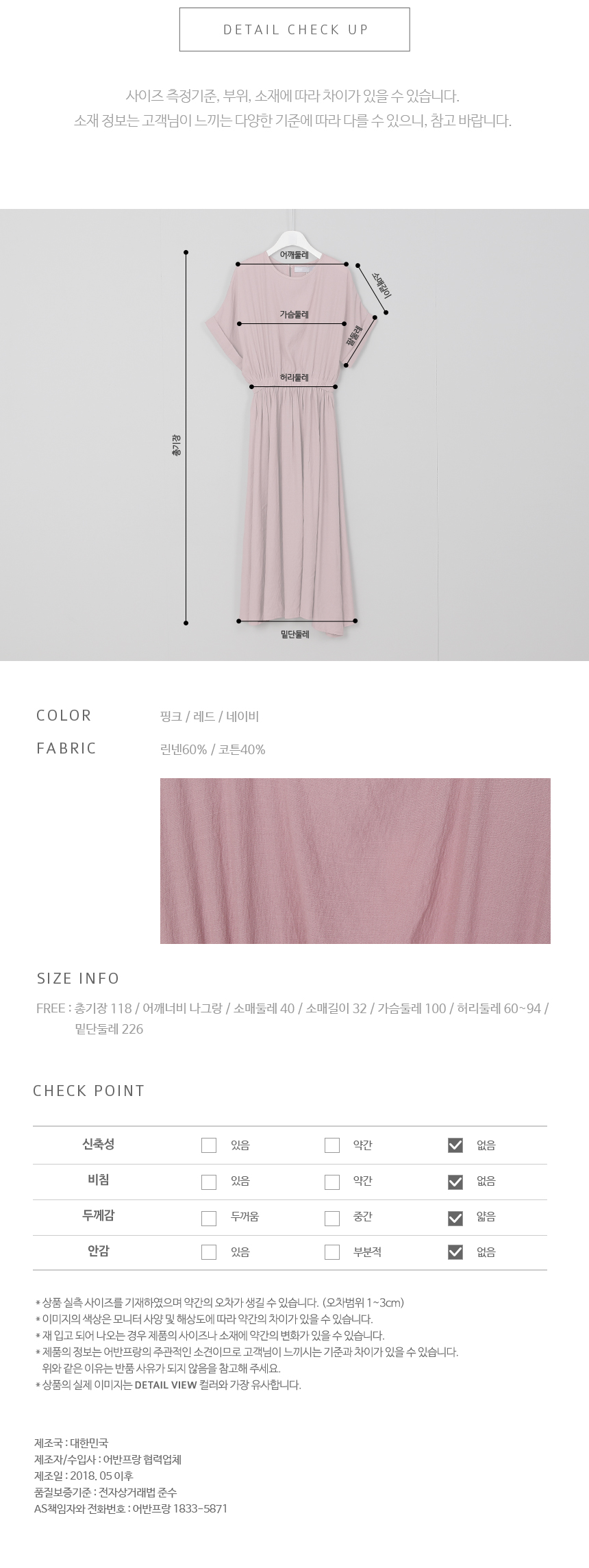 부드러운 나그랑 어깨선에 허리선으로연결되는 가오리라인 상의 디자인이편안하면서도 멋스러운허리밴딩 플레어 원피스랍니다소매는 롤업으로 마무리해단정하고 고급스러우며뒷목의 버튼으로 클로징해요허리선이 제허리라인으로 윗쪽에 있어배의 군살이 커버되고 밴딩으로 부담없이입기 좋으며 다리가 길어보인답니다하늘하늘 얇고 시원한 린넨, 코튼 혼방의소재감으로 한여름까지 입기 좋아요색상은 핑크, 레드, 네이비사이즈는 FREE 44~66반