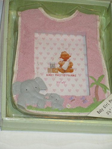 -. Title : Baby Girl Photo Picture Frame 3.5" x 5" Bib w/ Elephants