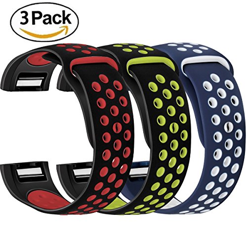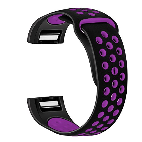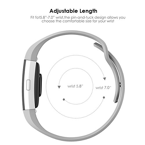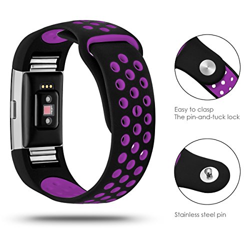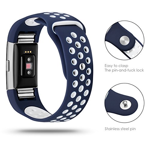 -. Feature : 1. Featured with 2 sizes for men and women, Small size fits for 5.7"- 7.5" wrist, large size fits for 7.1"- 8.3", length can be adjusted via the pin-and-tuck closure, free to choose the size that fits you best and most comfortably / 2. Watchband Able to Breathe: the band comes with 3 rows of air holes, which makes your wrist skin have adE.q.u.a.t.e contact with outer air for best breathability and perspiration, perfect design for all ports lovers! / 3. Soft Silicone Comfort: Made of durable and soft silicone material, it is elastic, lightweight and eco-friendly, ultimate comfort about tactility will ease you more during various sports like running, jogging, riding, hiking, and high intensity workout / 4. Best Mate For Your Fitbit Charge 2: Unique watch band with two brilliant color injection matches perfectly with your sports tracker, giving it a distinguish look and showing your personality about mainstream fashion at the same time. / 5. Easy to Mount Via Double-end Lugs: Lugs at each end can easily lock onto your watch firmly and precisely at a perfect seam. Easy to assemble and disassemble.