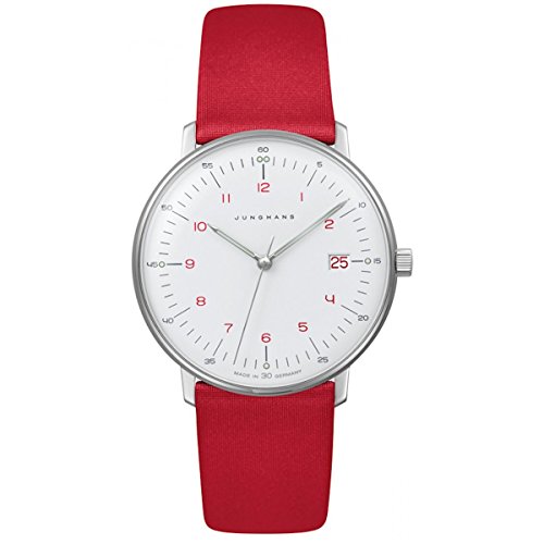 -. Title : Junghans Max Bill Ladies 047/4541.00 Quartz Matte-White Dial Date Red