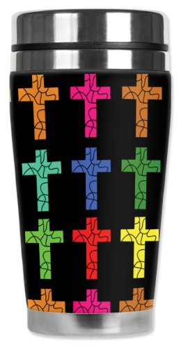 Mugzie Color Crosses Travel Mug with Insulated Wetsuit Cover, 16 oz, Black