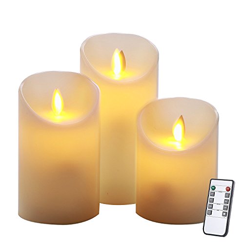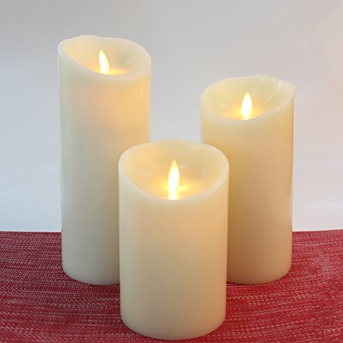 【3個セット】本物の蝋で作られた,リアルな炎のゆらぎのキャンドルライト。-サイズ:10CM、12.7CM、 15.2CM(高さ);7.6CM (直径)各1個 (電池別売り)