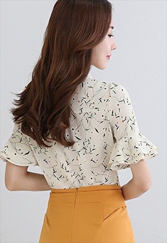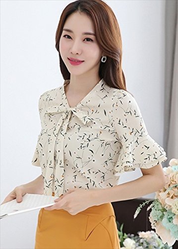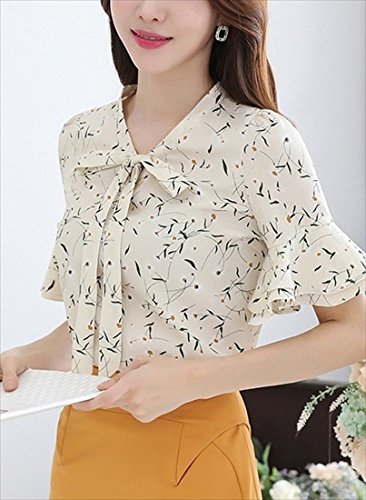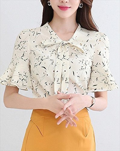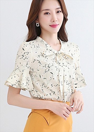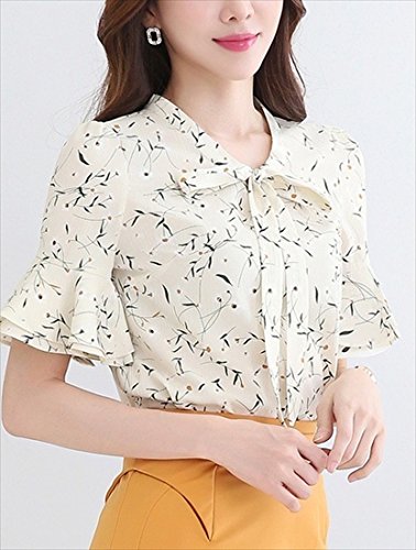 《후무후무》 (후무후무) fumu fumu 블라우스 레이디스 흰색 멋쟁이 오피스 반소매 꽃무늬 6색 큰 사이즈 S-3XL까지