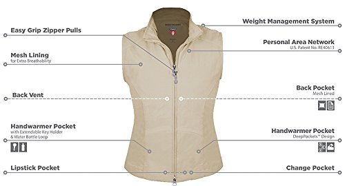 -. Brand : SCOTTeVEST -. Department : womens -. Feature : 18 Pockets / RFID Blocking Pocket - specially engineered pocket that blocks 13.56 MHz frequencies to keep your credit card and passport information secure from high-tech skimmers and thieves. / iPad Compatible - features a PadPocket that will comfortably and securely hold your iPad and other similarly-sized Windows or Android tablets / Patented Personal Area Network - a network of hidden conduits to connect wires to devices while they are in your pockets, including power banks, charging cables or headphones. / Weight Management System - specially engineered to balance the weight load across the entire garment so your neck and upper back won't get tired or sore. Even when fully loaded up with your gadgets and daily essentials, our Weight Management System ensures the extra weight does not affect your mobile lifestyle. -. ProductGroup : Apparel -. ProductTypeName : APPAREL -. Title : SCOTTeVEST RFID Vest for Women