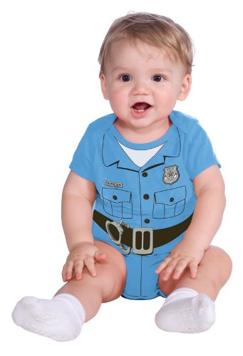 -. Binding : Toy -. Brand : Rubie's -. Color : Police -. Department : costumes -. EAN : 0883028159543 -. Feature : Onesie with P.R.Inted police uniform / Baby costume is fun for dress-up not just at halloween / Newborn fits up to 17 pounds and 27 inches, infant fits up to 22 pounds and 30 inches / Rubie's my first halloween collection features costumes that lets baby celebrate their first october 31 in photo-worthy style / Family owned and family focused, rubie's has been a world leader in bringing you fun for every season since 1950 -. Genre : Career -. IsAdultProduct : 0 -. Label : Rubies Costumes - Apparel -. Manufacturer : Rubies Costumes - Apparel -. Model : 883028159543 -. MPN : 881595-BLU-6-12 Months -. PackageQuantity : 1 -. PartNumber : 881595-BLU-6-12 Months -. ProductGroup : Apparel -. ProductTypeName : TOYS_AND_GAMES -. Publisher : Rubies Costumes - Apparel -. Size : 0 - 6 Months -. Studio : Rubies Costumes - Apparel -. Title : Rubie's Costume My First Halloween Police Officer Onesie Costume -. UPC : 883028159543