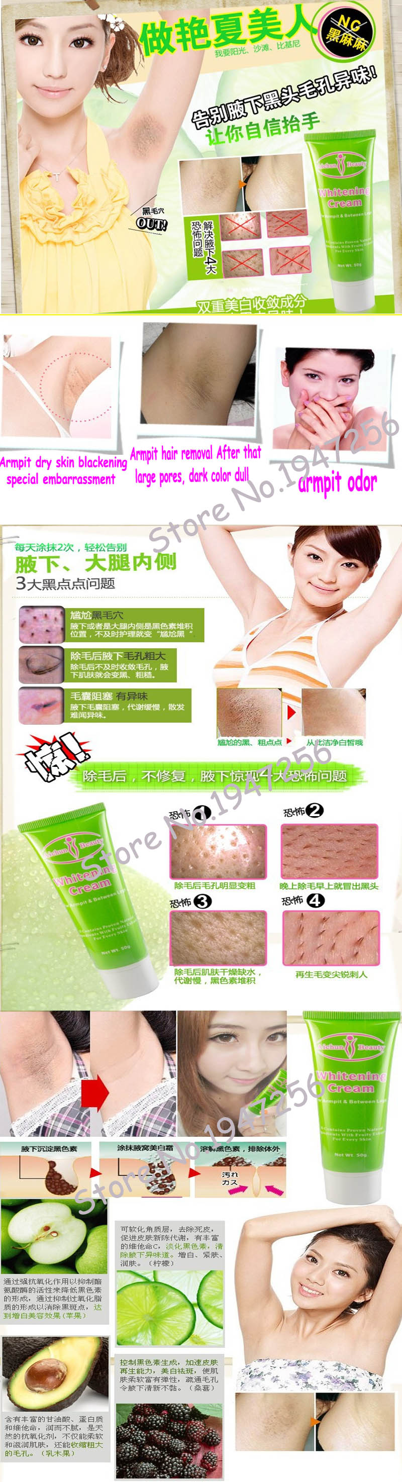 Hot Selling Freeshipping Aichun beauty armpit Whitening cream specially between legs 100% safe specail formula armpit whitener