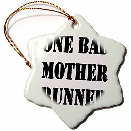 3dRose LLC orn_161096_1 Porcelain Snowflake Ornament, 3-Inch, "One Bad Mother Runner Marathon Running Jogging"