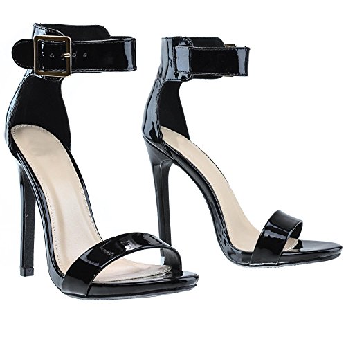 Binding : Apparel Product Description Simple yet elegant high heel dress sandal for prom, dinner or any classy evening events. They feature an open toe, a slight stitch trim, an elegant sculpted look, a gold buckle adjustable ankle strap, a cushioned insole, and am approximate 4.5 inch stiletto heel. These classy stiletto dress sandals come in Black Pat, White Pat, Salmon Pat (Pink), Dk Beige Pat, Black Lami, Gold Pu, Lipstick Lami (Red), Silver Pu, Black Flower, Hot Pink Pat, Multi Flower Pu, Red Pat, Gold Glitter, Silver Glitter, etc. Fit true to size. All man made materials. By Sully's 0