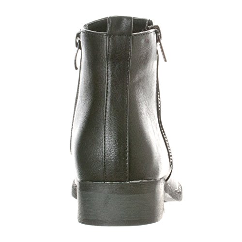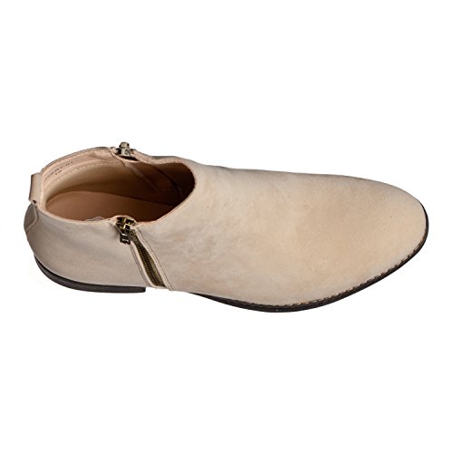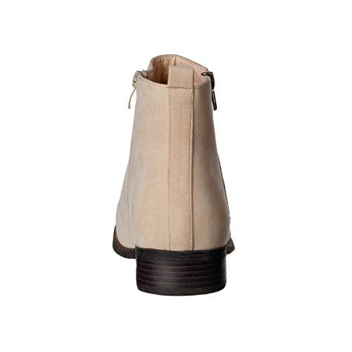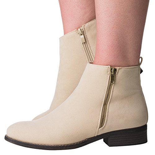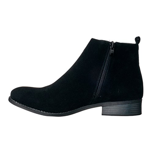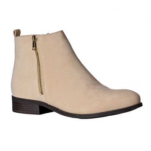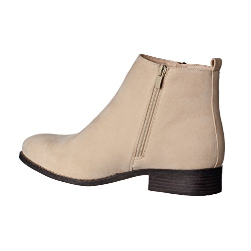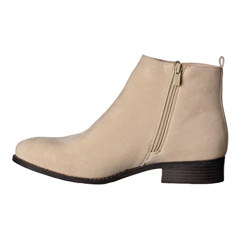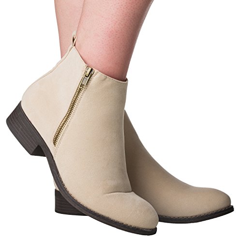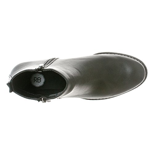 Binding : Apparel Product Description Riverberry's Avery is a stylish and comfortable ankle bootie boot that features a smooth, classic body. With a round toe shape and a decorative (non-functional) side zipper, the Avery strikes the perfect balance between edgy and stylish. A faux stacked low heel and visible sole stitching help to maintain an overall casual, semi-casual feel. Functionally, the Avery uses a full length, discreet side zipper and a slightly padded insole to ensure a secure, comfortable fit. The boot shaft has a height measurement of approximately 4.25" and a shaft opening circumference of about 10.5". The back heel measures about 1". Imported. 0