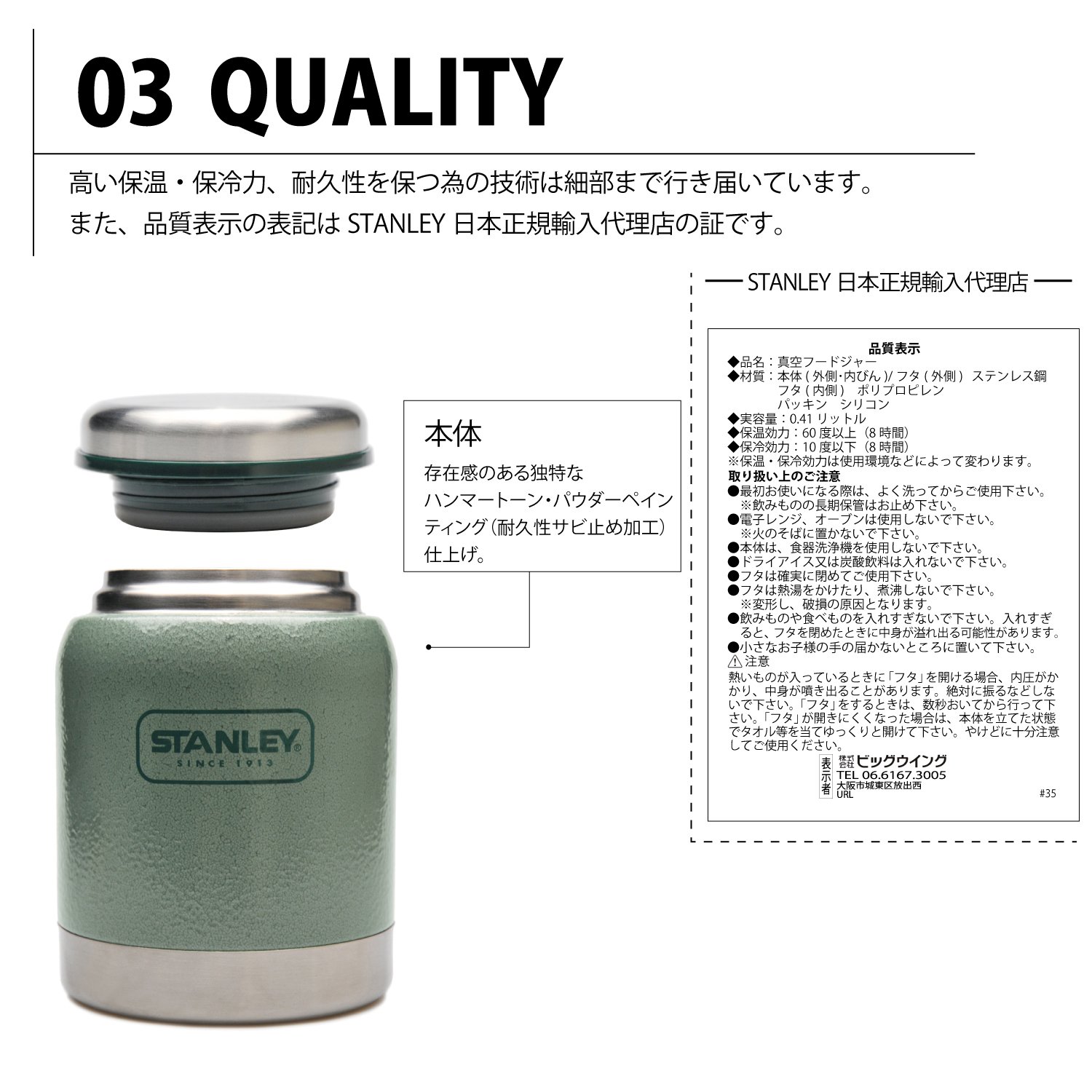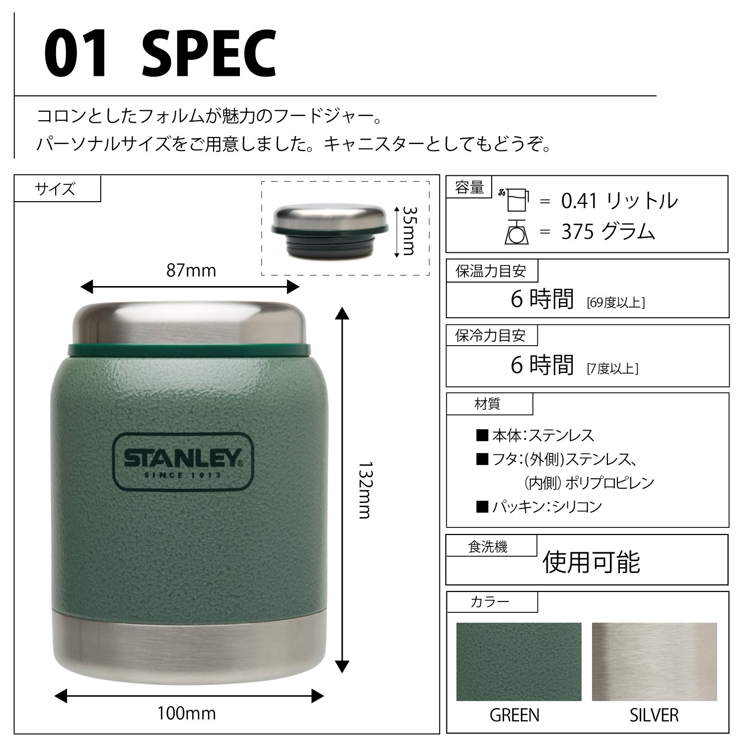 STANLEY (Stanley) vacuum food jar 0.41L Green 01610-004 (Japan genuine)