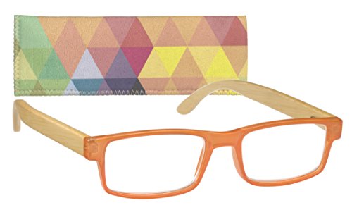 -. Feature : Optical quality aspheric lenses for less distortion and eyestrain. / SP.R.Ing hinges for a comfortable fit, they come with a coordinating soft case. / Opaque color on the front, with smooth bamboo temples, is quite flattering. / If you have to wear reading glasses you might as well be cool. / Fits a medium face.