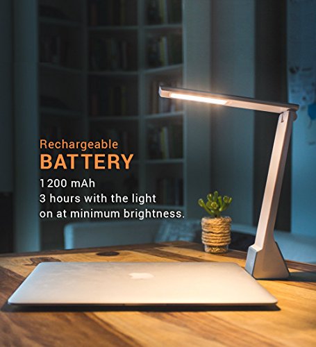 Portable LED Desk Lamp with Rechargeable Battery Travel Size 3 Lighting Choices (Read/Study/Relax) Durable 25 Year Life (Silver)