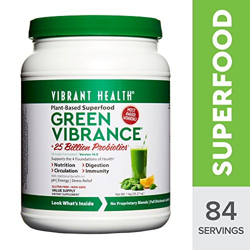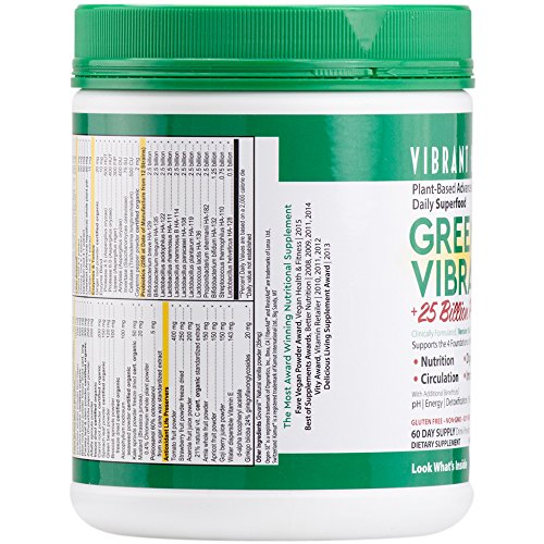 An award winning Green Super food! Human vitality can be described as the combined vitality (what we call Vibrance) of each cell in the body. Green Vibrance provides trace nutrients that should help each cell to function at peak efficiency. When we push each cell toward peak efficiency through diet and supplementation, the result may be increased energy and endurance, greater clarity of thought, more robust immunity, and a general shift in all bodily functions toward the ideal. Green Vibrance taken daily drives us toward these goals by addressing some very basic and essential biological requirements. A nutritional formula should have a well-defined purpose in order to deliver true value to the consumer, and delivering true value is the goal of Vibrant Health. A formula's components should be present at potencies that will achieve the stated goal. There are a lot of ingredients in Green Vibrance: 74 in all. They were put together with care, in order to maximize the synergism among nutrients. The result delivers healthful nutritional support to the 11 body systems. The ingredients in Green Vibrance were selected to support essential bodily functions without which life cannot be sustained. Cereal grass powders and juices (i.e. Certified organic, barley, oat, wheat, and Kamut) deliver virtually all known nutrients and several uncharacterized co-nutrients of great value.Feature