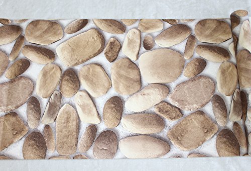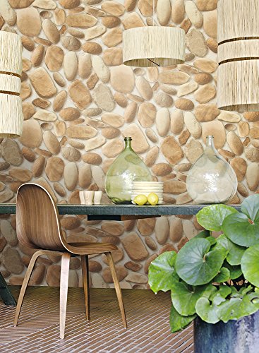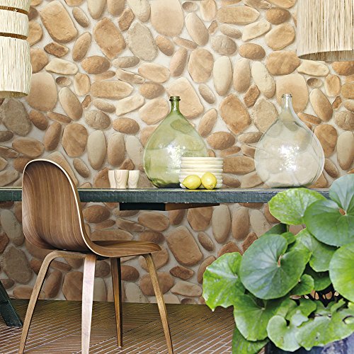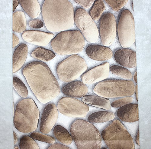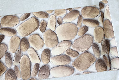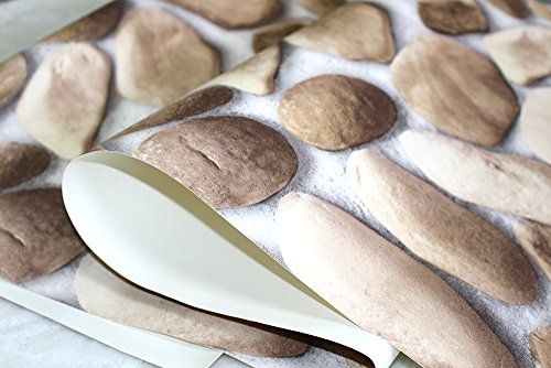 HaokHome 457002 Modern Faux Stone Wallpaper Roll Tan/Off White 3D Cobblestone Realistic Paper Room Wall Decoration 20.8" x 393.7"
