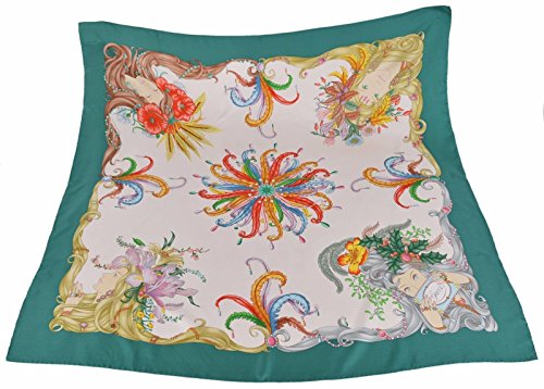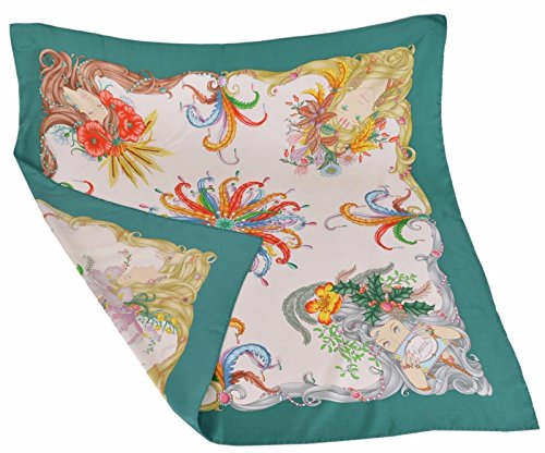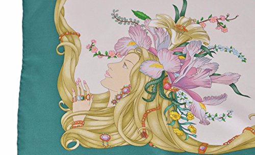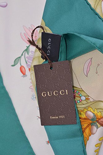 100% Silk Twill Gorgeous "Four Seasons" Pattern Cream Background Petrol Blue Trim Rolled Edges "Gucci" Script 35 x 35 Inch Square (90 x 90 CM) Made in Italy Condition: New with Tags What is Included: Scarf & Tags Color: Cream MultiFeature