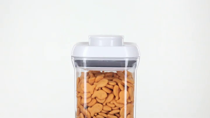 Press buttons once to seal Containers and again to open; 2.5 qt Container is ideal for granola, rice, pasta and more