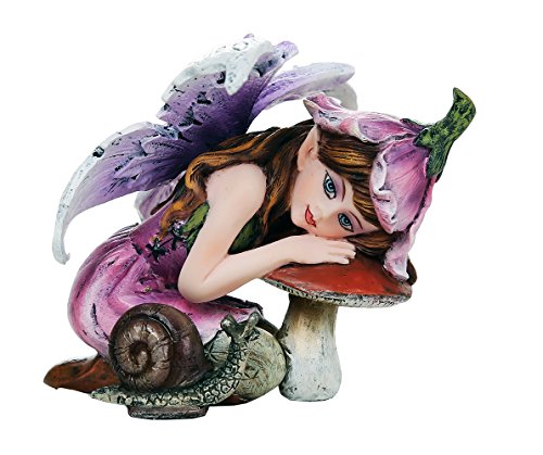 -. Title : Fairy Garden Flower Fairy with Toadstool and Snail Decorative Mini Garden of Enchantment Figurine 3 Inch