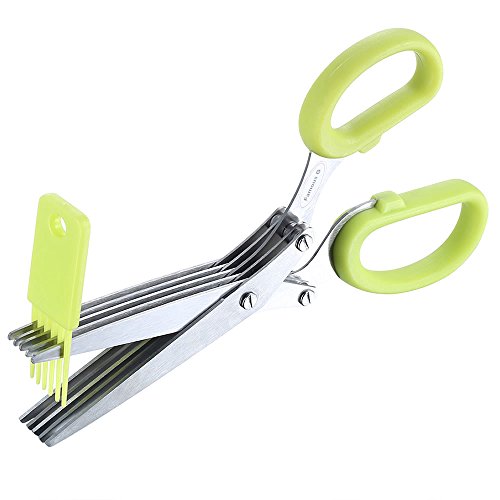 PengMei Culinary Herb Scissors Stainless Steel 5 Blades Sharp Kitchen Shears, Salad, Slices, Chops, Cuts etc..Faster, Save Time, Cleaning Comb, Dishwasher Safe