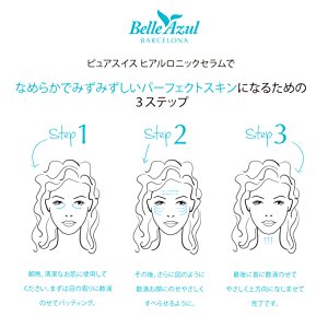 ヒアルロン酸がお肌の真皮の内側に深く水分を閉じ込めてくれるのは既に広く知られています。Belle Azulのヒアルロニックセラムはヒアルロン酸+アルガン幹細胞エキス。さらにビタミンⅭを配合。これらの成分が全て一緒になって年齢を重ねたお肌にうるおいを与え乾燥によるシワや小ジワの目立たない、なめらかでイキイキとしたハリのある美しい素肌につなげていきます。