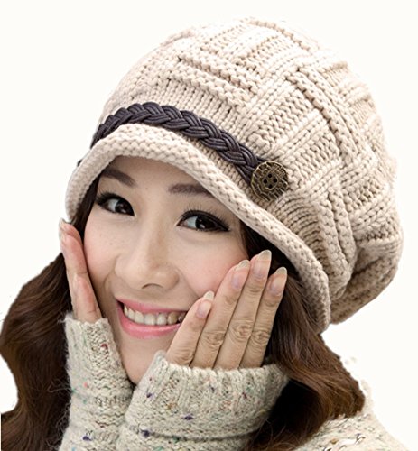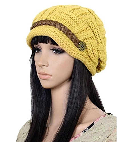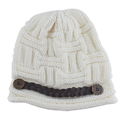 ()/Accessories/Hats/DIRECT FROM USA/Fashion Women Warm Winter Knitted Crochet Hat White Baggy Beanie Cap Button Braided Belt Decora...