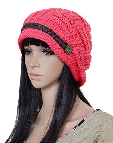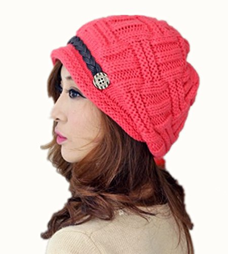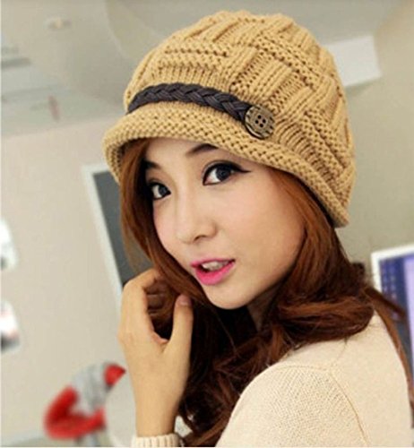 Product Description 100% new and high quality Keep warm in cold weather Patterned knit hat with leather strap decoration, highly fashionable Suitable for women and girls Package Includes: 1 x Knitted Hat 0