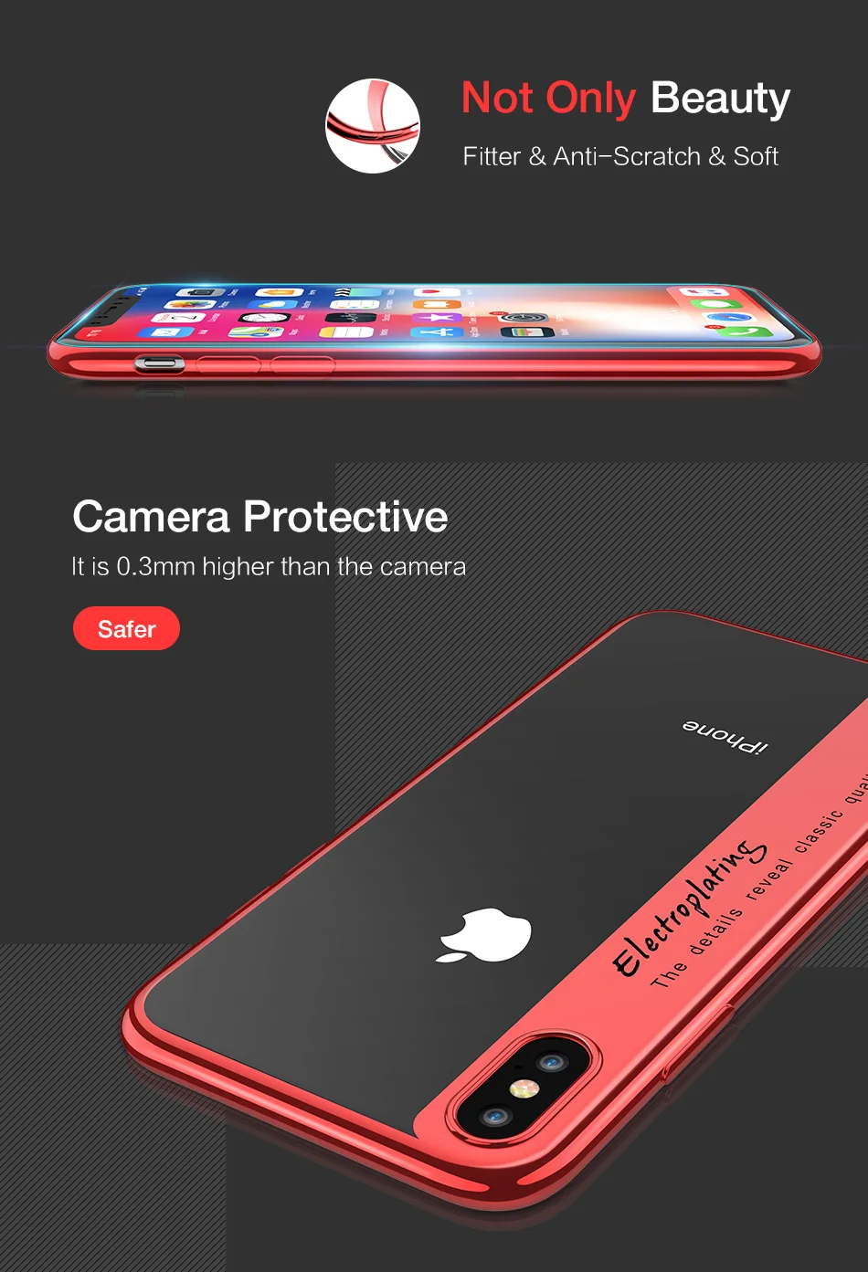 Features:Stylish Colorful Clear Transparent Phone Cover For iPhone X 7 8 Plus