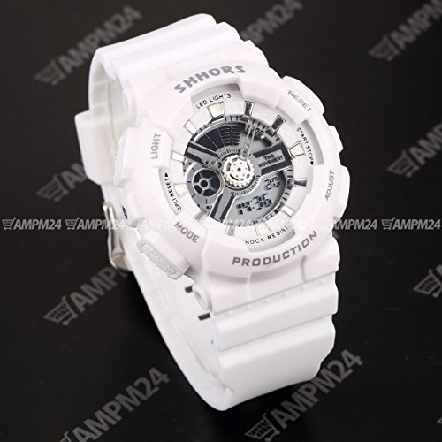 AMPM24 PHN038 맨즈 쿼츠 스포츠 디지털 아날로그 날짜 러버 밴드 손목시계