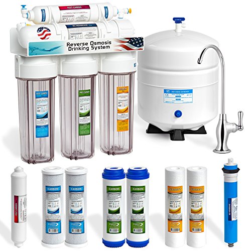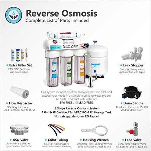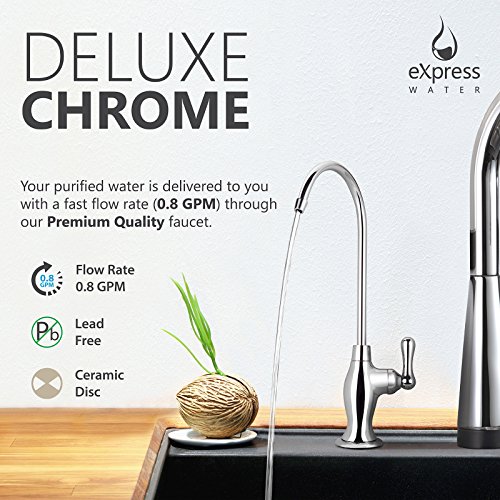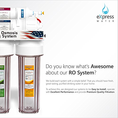 Express Water 5 Stage Under Sink Reverse Osmosis Filtration System 50 GPD RO Membrane Filter Deluxe Faucet Clear Housing Ultra Safe Residential Home Drinking Water Purification Extra Set of 4 Filters