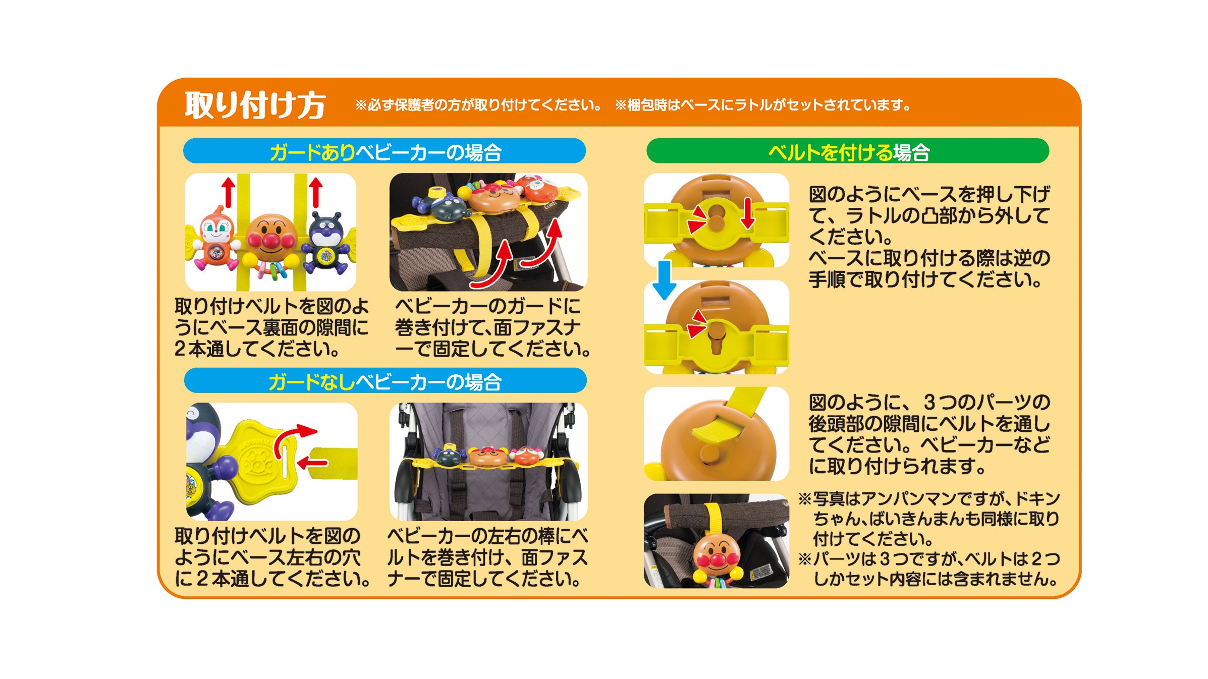 Anpanman, Dokin, and Baby - man are attached to the stroller and you can go out.