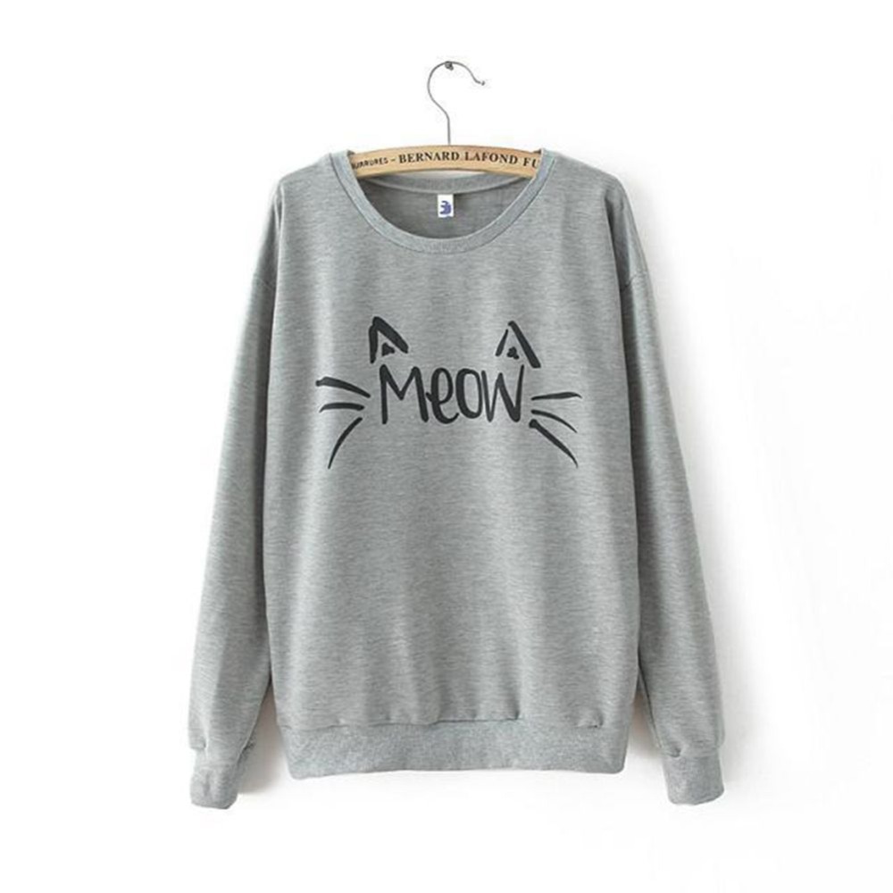 Fashion Women\\\ s Casual long Sleeve MEOW Print T-Shirts Tops Blouse Sweatshirt