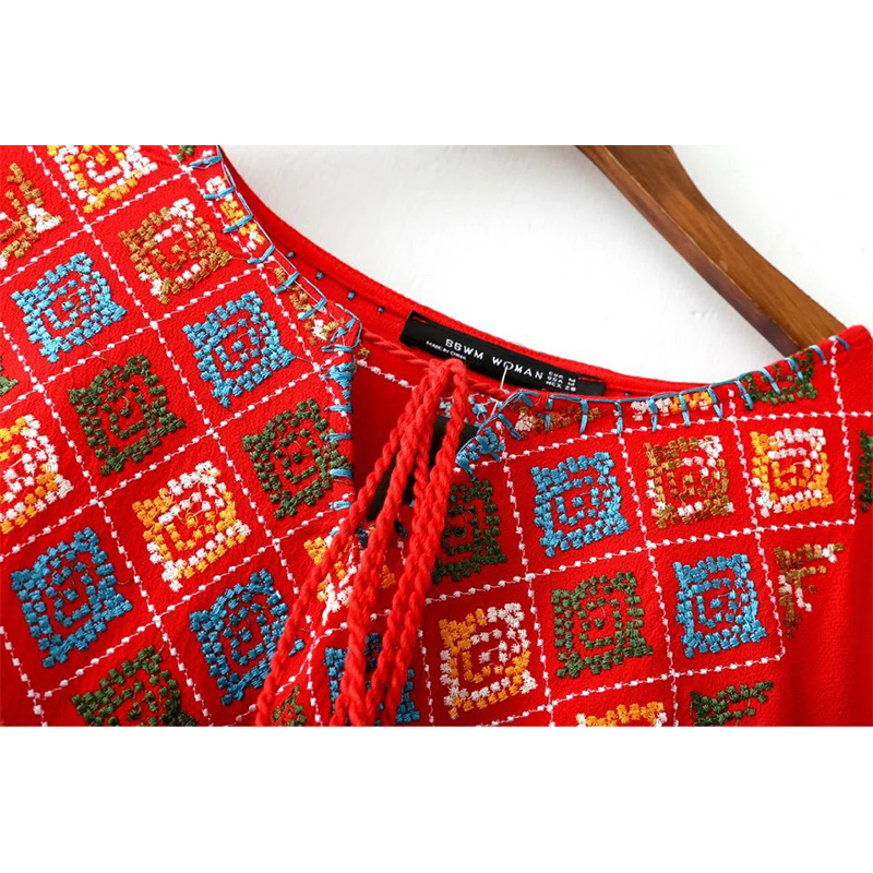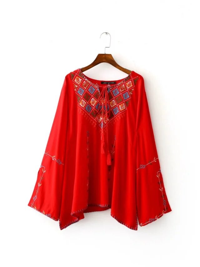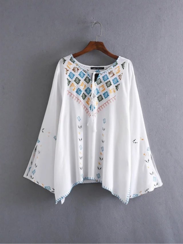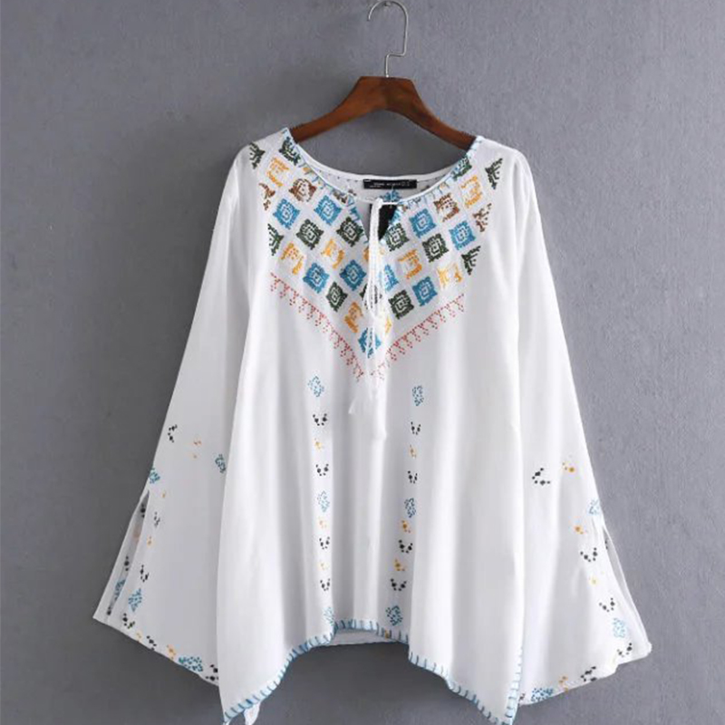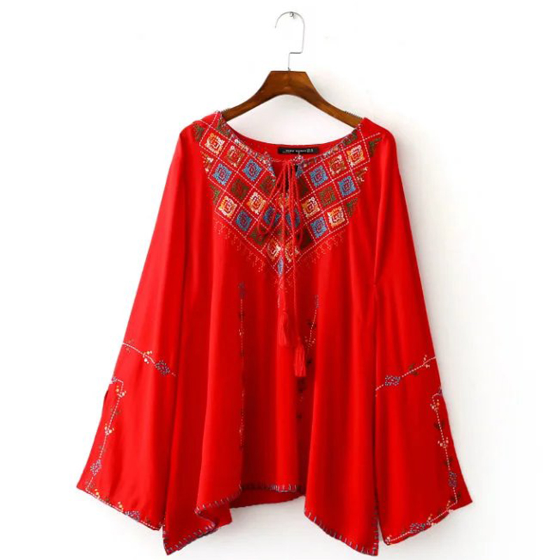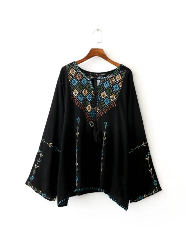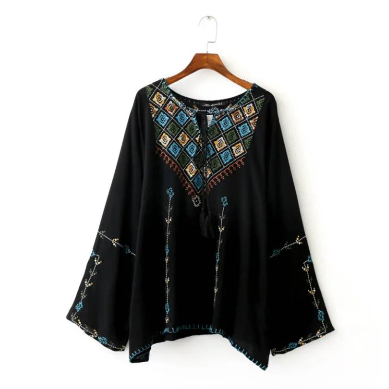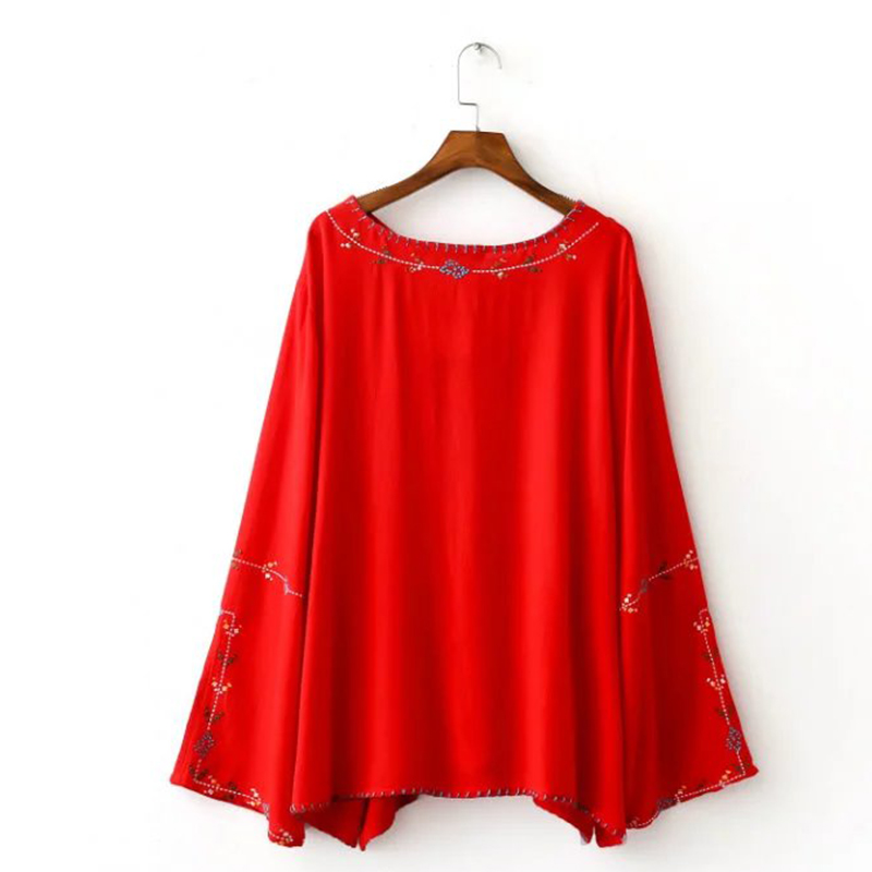 Fashion Embroidered Floral Boho Blouse ropa mujer Cloak Flare Sleeve Loose Shirt Women Long Sleeve Plus Size feminino