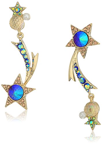 Betsey Johnson Colorful Multi-Stone Shooting Star Mismatch Drop Earrings