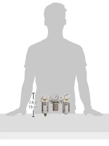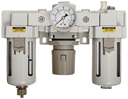 PneumaticPlus SAU4000M-N06G Three-Unit Combo Compressed Air Filter/Regulator/Lubricator FRL Air Preparation Unit 3/4" NPT - Manual Drain, Poly Bowl, Relieving Type, 10 Micron, With 0-150 PSI Gauge