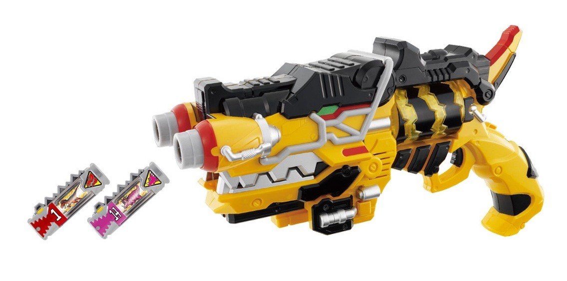 キョウリュウジャーが使用する銃タイプの変身アイテム「変身銃 ガブリボルバー」が登場! カミツキアクションで全ての獣電池を読み込み、様ーな音声なりきり遊びが楽しめる!! 獣電池2本付属 (ガブティラ、スティメロ) 使用電池:単4×2 (別売)