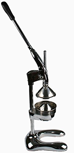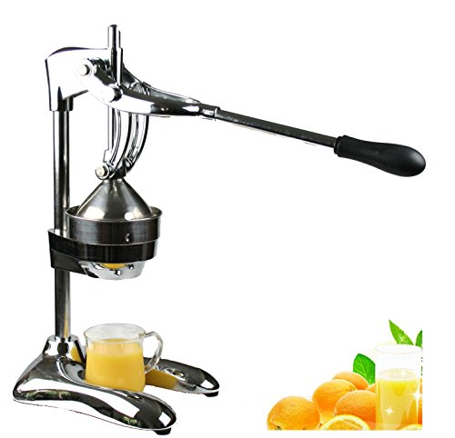 -. Feature : This heavy duty hand juicer extracts juice from orange, lemon, lime, and grapefruit quickly, efficiently and easily. It is also good for other soft fruits such as water melon, strawberry, kiwi fruit, tomato, grape, pomegranate, and more. / Machine operated juicers produce heat while juicing, which makes juice be oxidized to some degree. Manual juicer can void this oxidization and get fresher juice. / Constructed from ultra-strong 18/10 stainless steel and durable cast iron; Base measures 10.25 by 8.00-Inch; Press measures 34-Inch high with handle in upright position. 17" long arm makes press easily and get higher pressure on fruits. / Sturdy, high strength gears with heavy-duty metal. Labor and time saving. / Easy and straightforward to use and easy to clean. Weight 9 lbs.