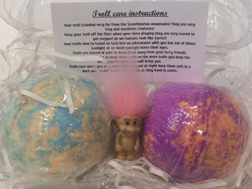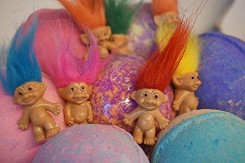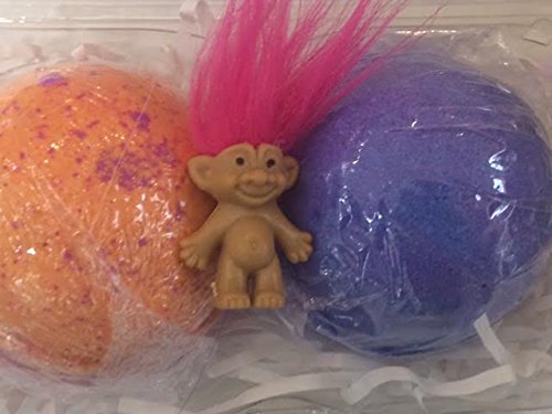 -. Feature : All natural, non toxic ingredients Includes 2 bath bombs and 1 extra troll (3 trolls total) ingredient card and care instructions / Spins, Foams, Bubbles and Vibrant colors Paraben Free. - Cruelty Free. / Soothe and calm your Skin these fizzy bath bombs provide all natural aromatherapy benefits while adding fun to the tub! / Directions:after the bath bomb is done fizzing and bubbling there will be a little plastic capsule that floats to the top of the water,open the capsule and the troll will appear for more product videos visit us on instagram fusionbombsquad! / Baking Soda, Citric Acid ,Goats Milk Powder, Shea Butter,Avocado Oil, Coconut Oil, Kayolin Clay, essential oils, Skin Safe colorant