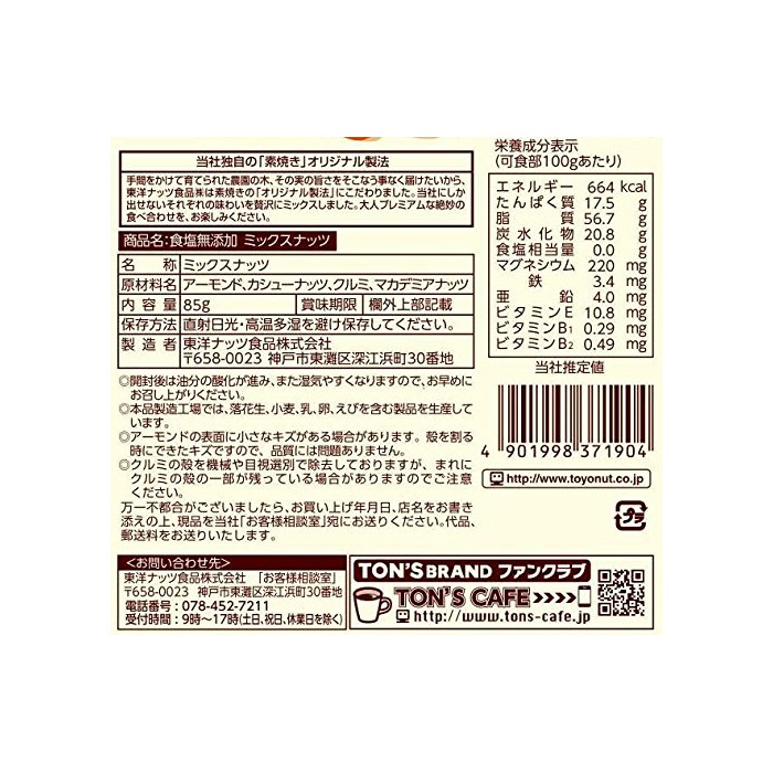 원본상품명: 東洋ナッツ 食無添加ミックスナッツ 85g