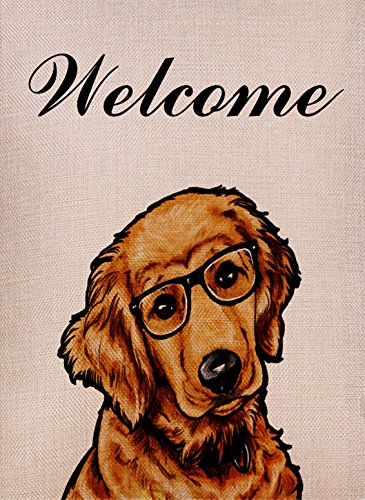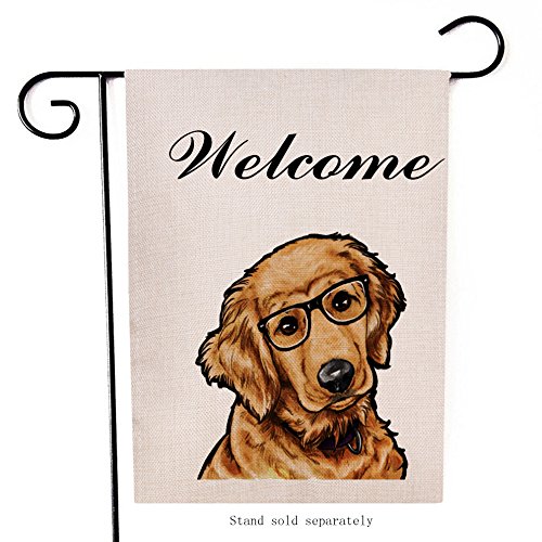 -. Title : Dyrenson Home Decorative Outdoor Dog Garden Flag Welcome Quote, Golden Retriever House Yard Flag, Animal Garden Yard Decorations, Seasonal Outdoor Flag 12.5 x 18 Glasses Dog for Lover