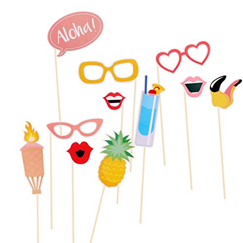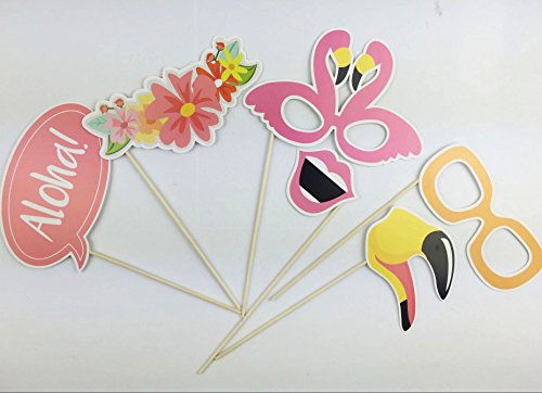 - This 21 pieces of flamingo topic party photo booth props come with a variety of comical masked props, and can use for all your playful party occasions. It be consisted of flamingo, candle, drinks, lovely glasses, flower, pineapple and much more;