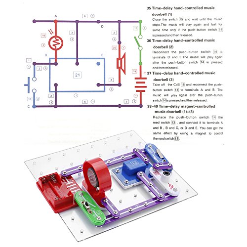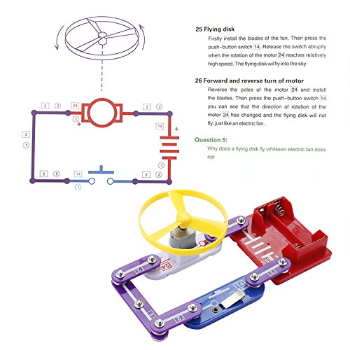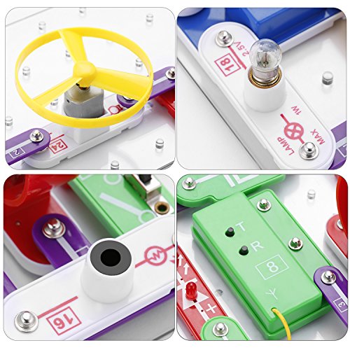 -. Feature : No tools required. clear and concise Operation Manual Included. This product complies with following safety standards 2001 EN 71. All of the parts have colored graphics that represent real electronic names and symbols. / Build 335 experiments with over 31 circuit snap parts,each component has a code printed, circuit snap parts design, well-connected and no extra tools needed. Make kids hands-on experience designing and building models of working electrical circuits / Edutainment way for kids to study . Kids can have great fun and get familiar with circuits with real circuit components and clear illustrated manual. / The toy set can be used to make interesting circuits, encouraging educational play that teaches your kids about electricity.It will be a better gift for your kids to learn the science and physical.