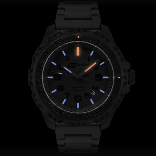 [Description] T100 makes this watch up to 4 times brighter than a Luminox or Traser T100 illumination lasts up to 50 years_ which is double the life of a standard T25 tritium watch T100 represents the latest technology in tritium watches and makes seeing the time in the dark much easier on the eyes Ultra lightweight carbon-fiber reinforced case combined with scratch resistant sapphire crystal