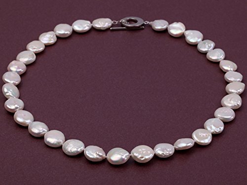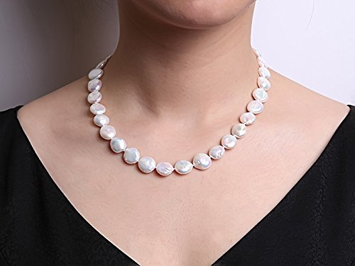 Description *Lovely single-strand Necklace made of 11-12mm white button-shaped cultured freshwater pearls.