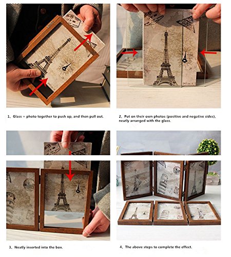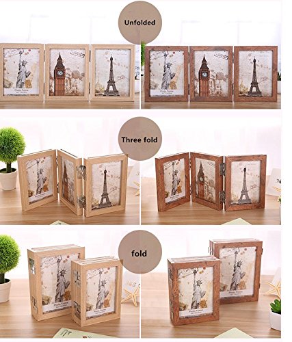 leoyoubei 5x7" folding frame Triple Duplex Frame 6 photos show silver-color Hinges-Folding Photo Frame With Glass Front (brown)