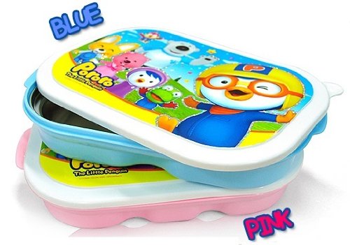 -. Title : Pororo, Portable Stainless Steel Divided Food Tray, Platter with Lid in Pink, Made in Korea