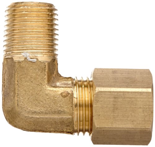 Anderson Metals 50069 Brass Compression Tube Fitting, 90 Degree Elbow, 1/4" Tube OD x 1/8" NPT Male Pipe