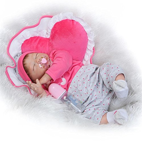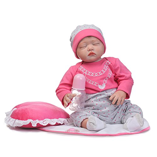 22inch 55cm from head to toe, with GentleTouch vinyl head and limbs and weighted body for a real baby feel.The doll with Magnet pacifier.