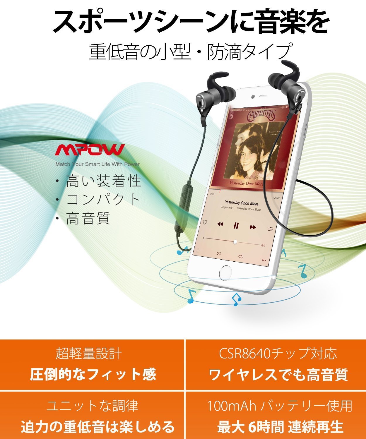 ● Built-in magnet ● Built-in magnet design, easy to put together two earphones when not in use, looking like a necklace when put on the neck is a wonderful design.